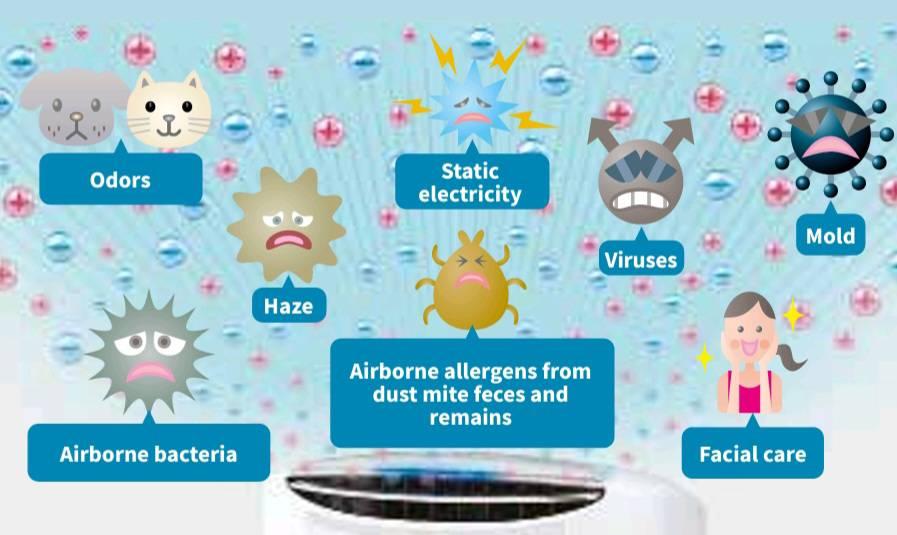 - การปล่อยประจุไอออน – อุปกรณ์จะสร้างไอออนบวกและลบ และปล่อยออกสู่อากาศ